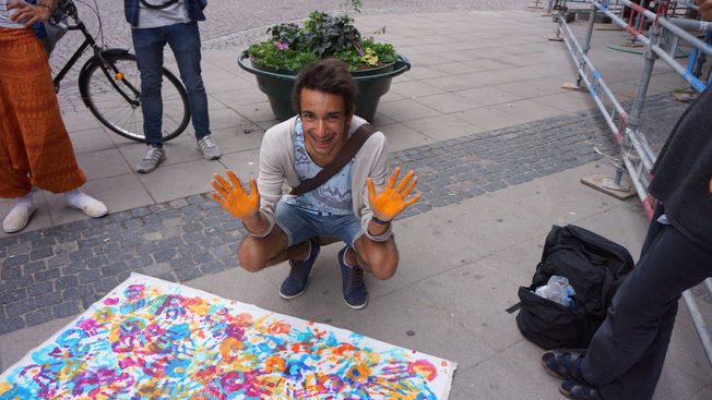 Gather thousands of hand impressions from each country and transform them into a unifying work of art.